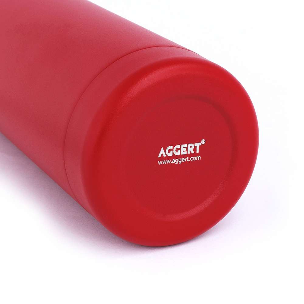 AGGERT provides vibrant insulated bottles for office, school, and home. The focus is on heat/cold retention, daily portability, and durable materials, helping users carry water confidently. The Soft Touch model RD-041021 pairs a bold red finish with 500ml double-wall construction.