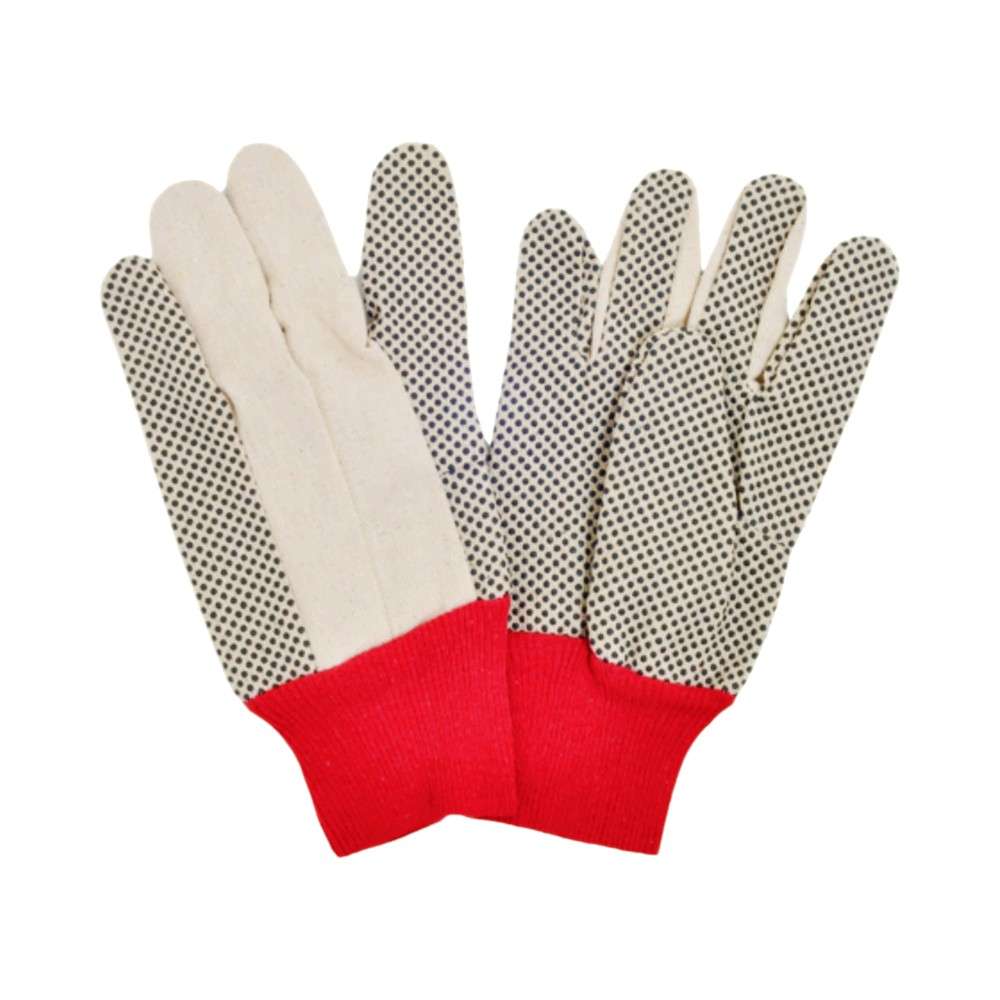 • Heavy-duty, dotted safety gloves with superior grip for all industries.1. Our 14 ounce Drill Dotted Gloves are designed for the toughest tasks in various industries. These heavy-duty gloves are made of cotton material with PVC polka dots, providing a high level of grip and durability for any job. The knitted wrist design ensures a comfortable and secure fit while also sealing out dirt and debris. With these gloves, you can confidently handle tasks in general maintenance, manufacturing, warehouse operation, and parts handling. Make sure your hands are well-protected with our Drill Dotted Gloves for the ultimate performance in any work environment.