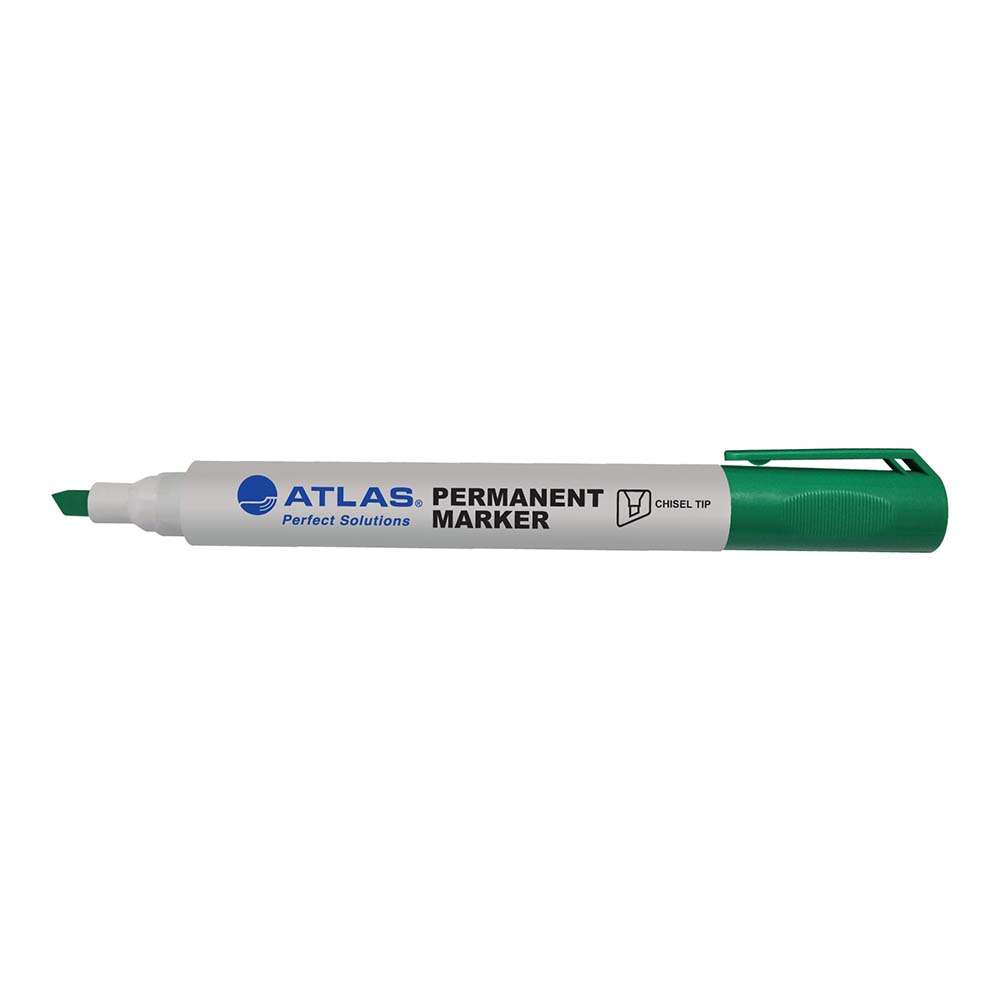 Atlas Permanent Markers, Chisel Tip, Water-Resistant, Precise Line, Smudge Free, Smooth Flow, Comfortable Grip, Ideal for Marking & Labelling - Green