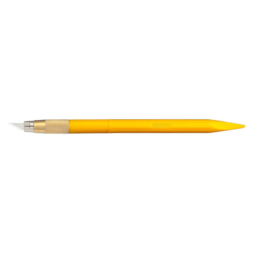 سكين أولفا للتصميم الفني، يتضمن (30) شفرة بديلة للأعمال الفنية والحرفية وكتابة القصاصات لون أصفر ضمن مجموعة من (1+30) قطعة
