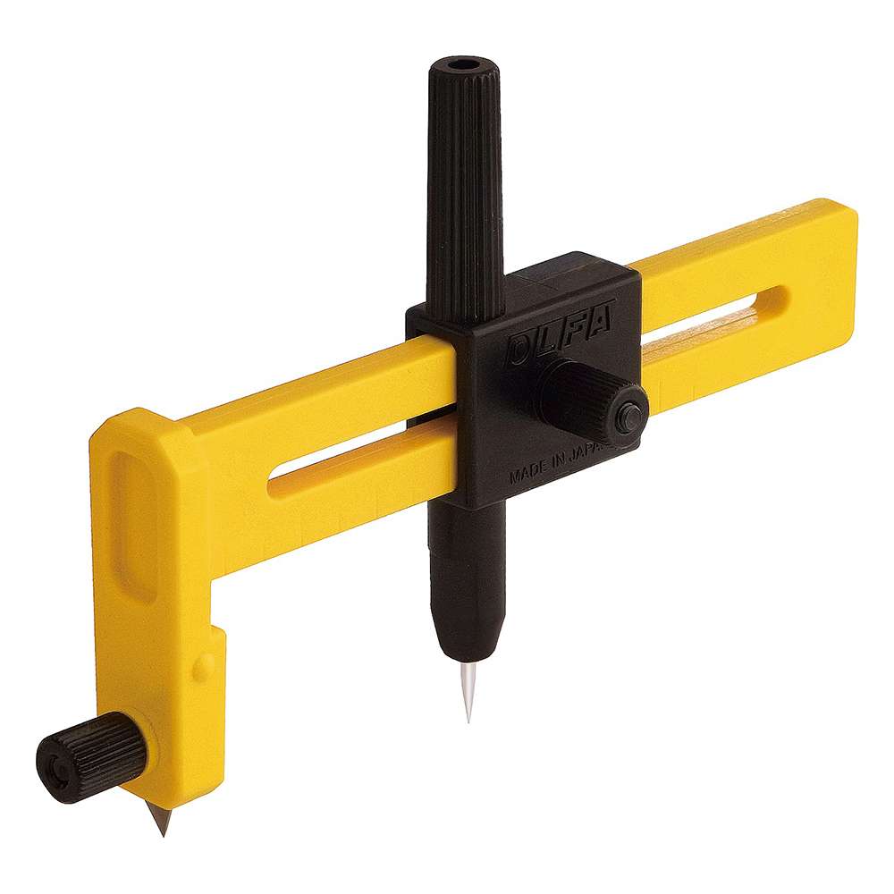 فرجار قاطع من أولفا مع (5) شفرات بديلة، قطرها (1–15cm) لدوائر ورقية مثالية أصفر وأسود ضمن مجموعة من (1+5)