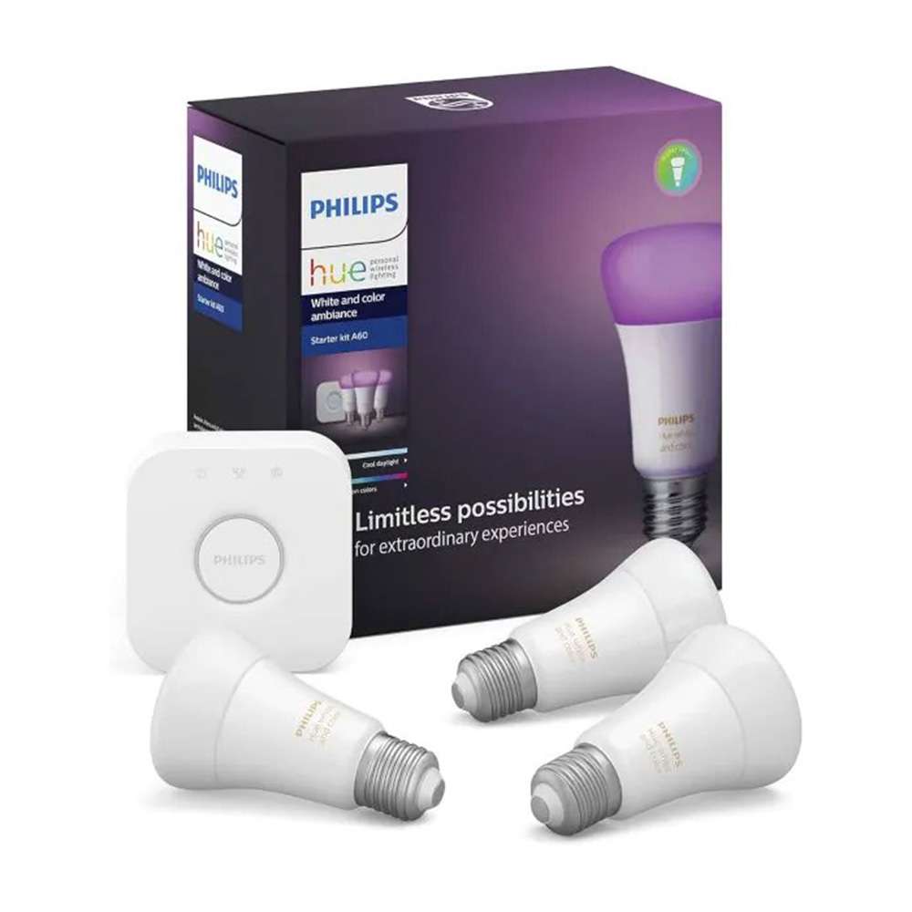 مجموعة إضاءة فيليبس هيو (A60) بمأخذ (E27) استطاعة (9W) البيضاء و الملونة المكونة من (3) قطع