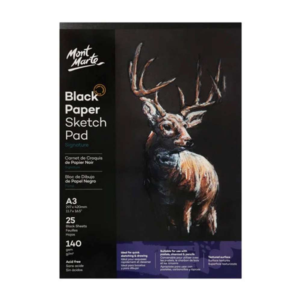 دفتر رسم مونت مارت أسود مقاس (A3) غراماج (140gsm) مكون من (25) ورقة