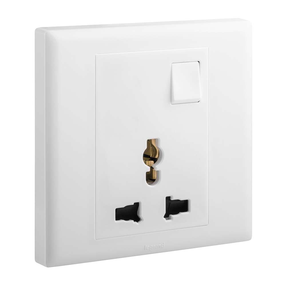 Legrand Eloe Multistandard Switched Socket, 1-Gang, Gives Premium Look, Suitable for Home & Office Use – White