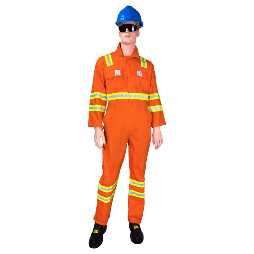 With 2 inches dual tone (grey/flourescent yellow) FR reflective tape, 11 reflective tapes, 4 reflective tapes on sleeves 4 reflective tapes on leg, 2 reflective tapes on shoulder, 1 reflective tape on waist, Sanforized / mercerized