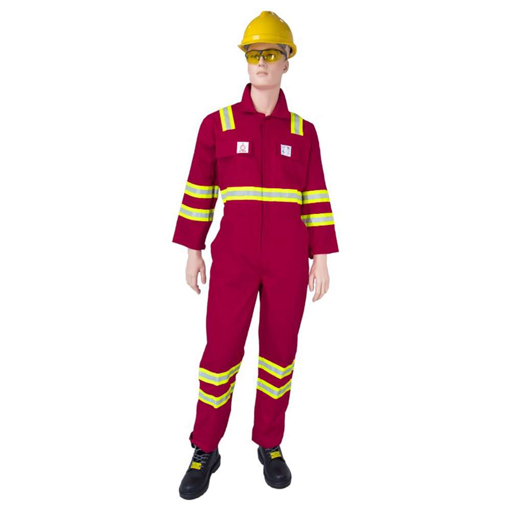 With 2 inches dual tone (grey/flourescent yellow) FR reflective tape, 11 reflective tapes, 4 reflective tapes on sleeves 4 reflective tapes on leg, 2 reflective tapes on shoulder, 1 reflective tape on waist, Sanforized / mercerized