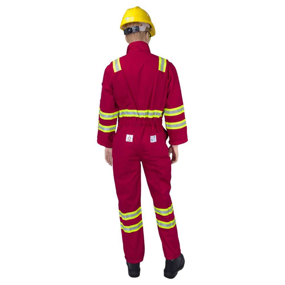 With 2 inches dual tone (grey/flourescent yellow) FR reflective tape, 11 reflective tapes, 4 reflective tapes on sleeves 4 reflective tapes on leg, 2 reflective tapes on shoulder, 1 reflective tape on waist, Sanforized / mercerized