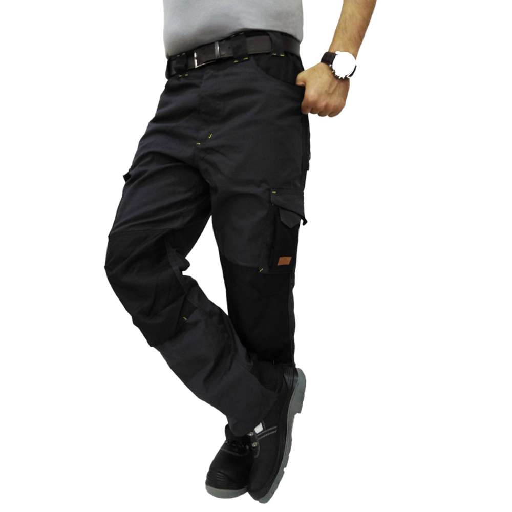 100% Cotton Canvas Fabric, Side pocket on the left leg with velcro & flap + pen & mobile pocket, Double reinforced side pocket on the right leg with velcro & flap, Large belt loop with waist band, Abrasion resistant antiwear with keep pad insert