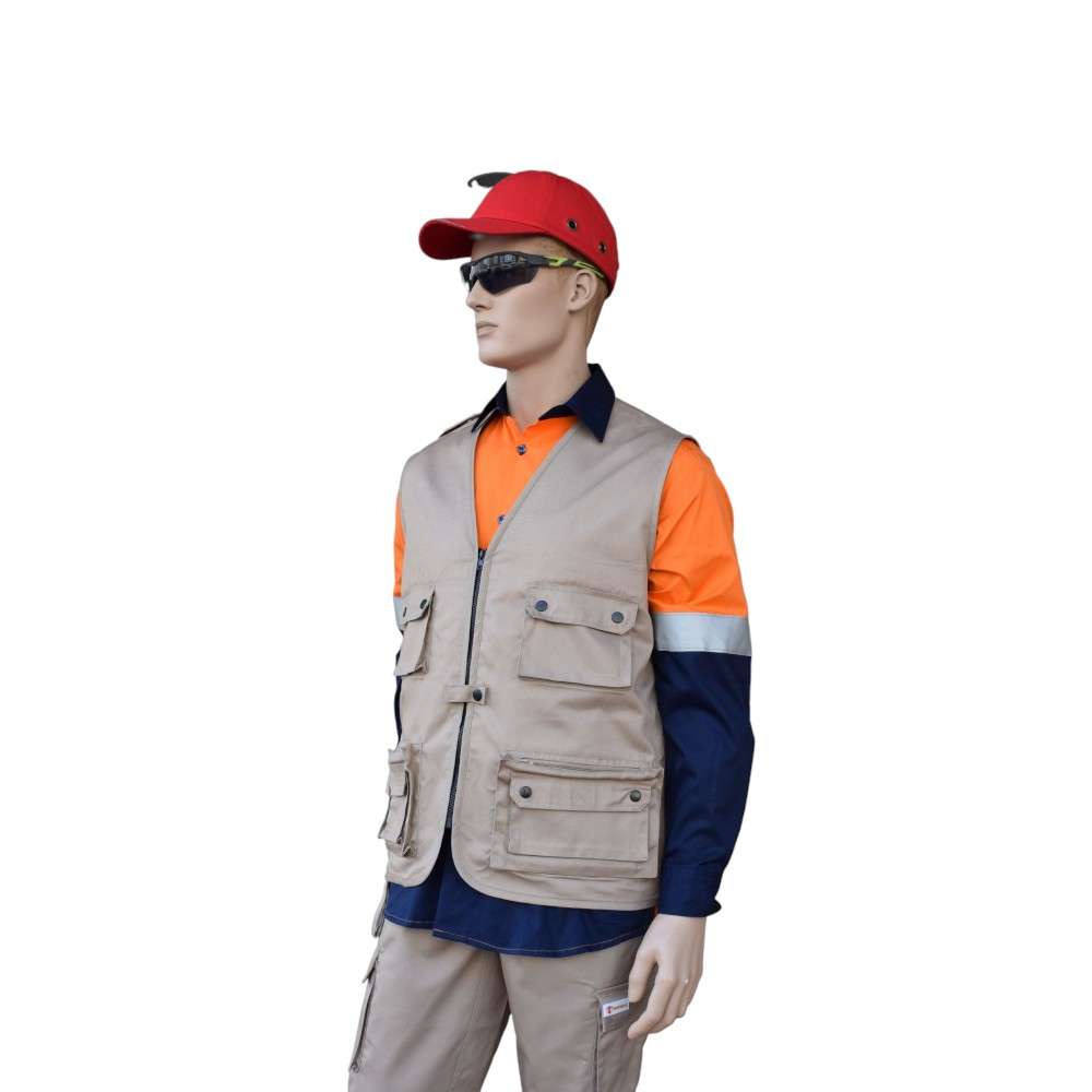 2 chest pockets with flap & button closure, 2 down pockets wth zipper closure, Another pocket with flap & button closure above the left down pocket, 2 small pockets with flap & vecro closure above right down pocket, 1 big pocket at the back