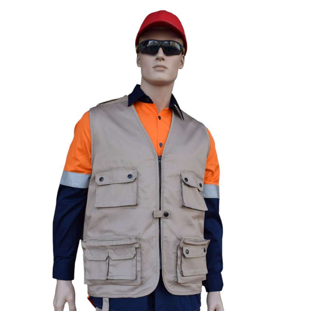 2 chest pockets with flap & button closure, 2 down pockets wth zipper closure, Another pocket with flap & button closure above the left down pocket, 2 small pockets with flap & vecro closure above right down pocket, 1 big pocket at the back
