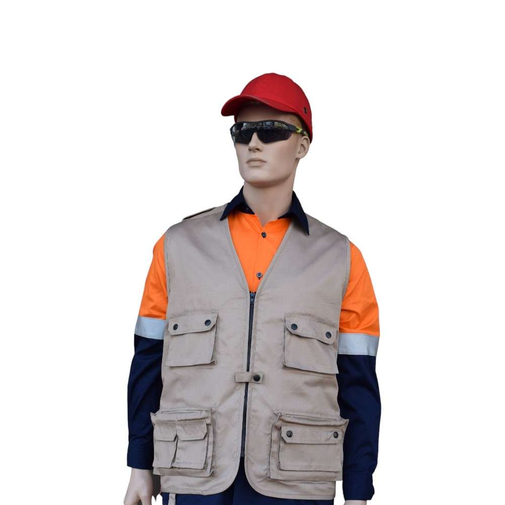 2 chest pockets with flap & button closure, 2 down pockets wth zipper closure, Another pocket with flap & button closure above the left down pocket, 2 small pockets with flap & vecro closure above right down pocket, 1 big pocket at the back
