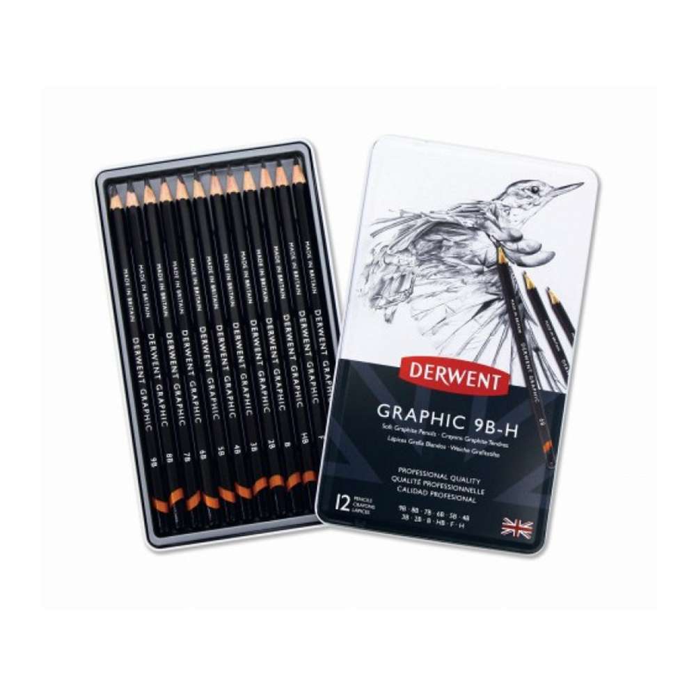 - Derwent Graphic Hard 12 Pencils Tin – Compact set of hard graphite pencils for clear, precise line work.