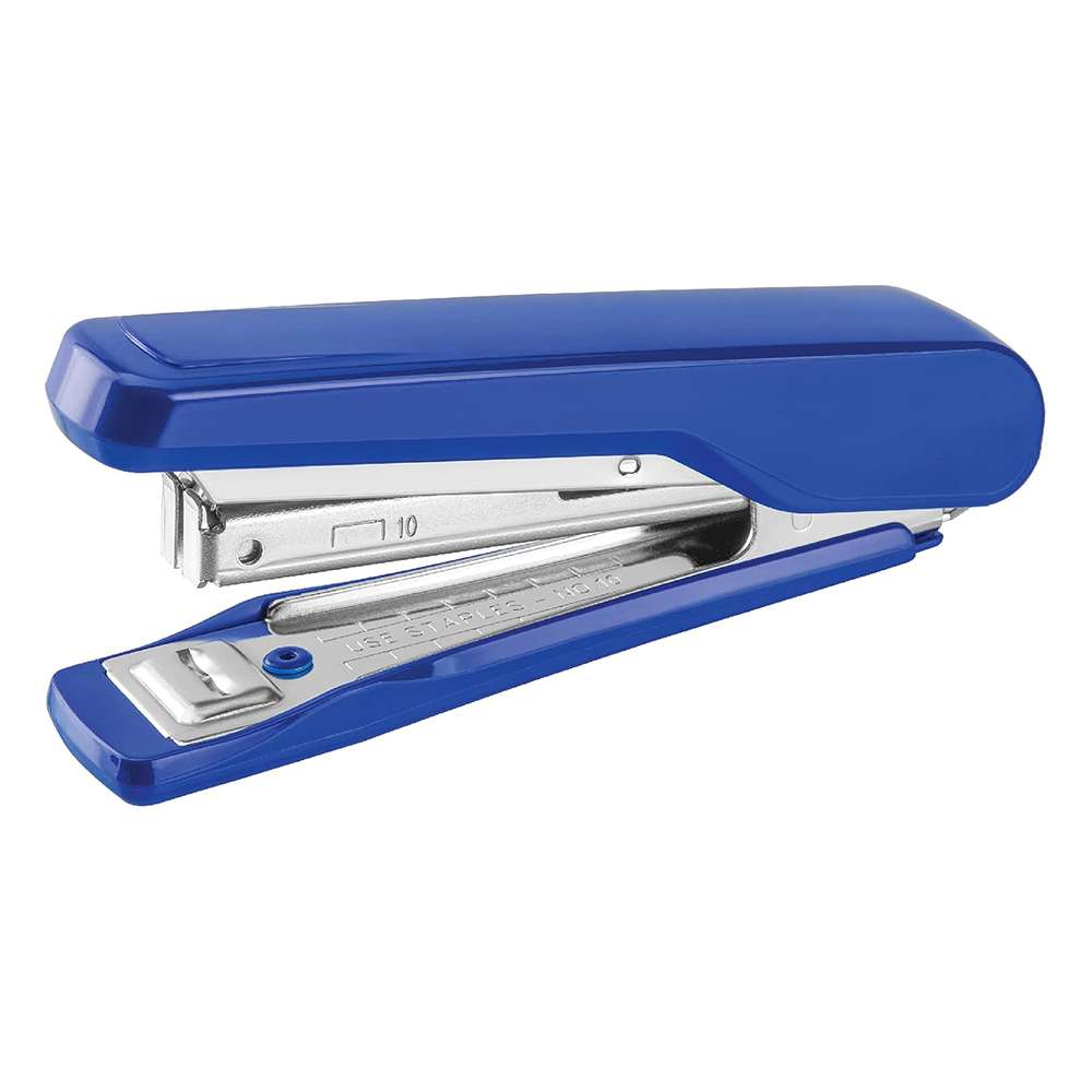 Half-strip staplers load staples from the side (top-loading), making them lighter and more portable. They typically handle 30 sheets and have a staple capacity of 50 to 100. Full-strip staplers load all staples at once from the front, making them faster for high-volume work—they can handle up to 30 sheets with a larger loading capacity.