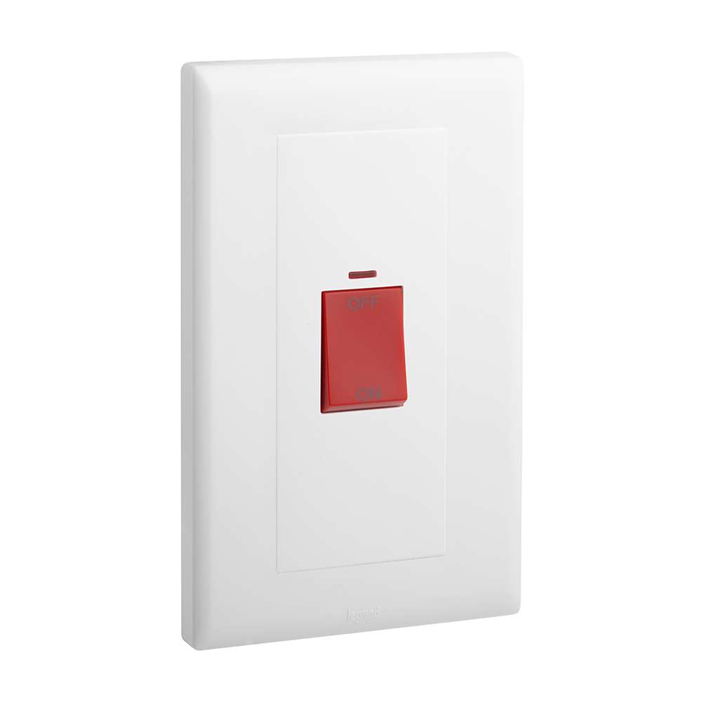 Legrand Synergy 20A Double Pole Switch with LED, Safer Single-Point Isolation, Suitable for Home - White