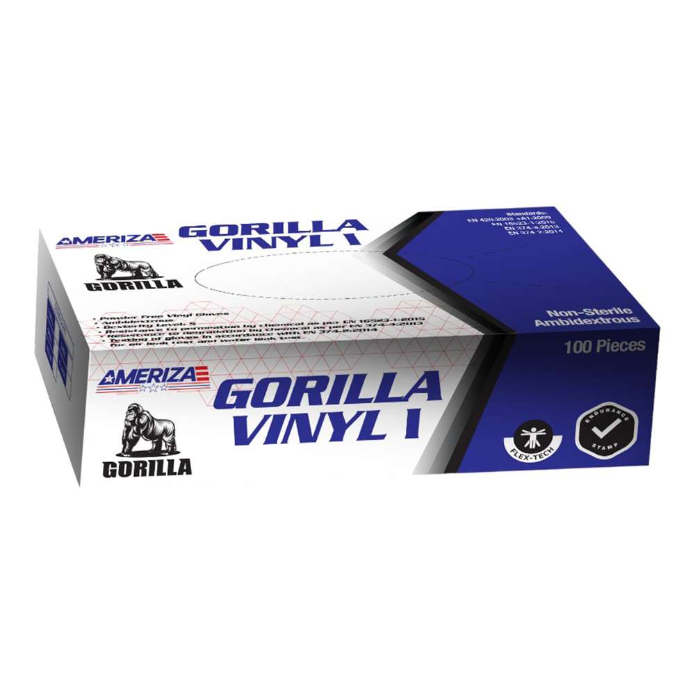 قفازات أميريزا (Ameriza) غوريلا (Vinyl I) الخالية من البودرة تباع (100Pcs/Pack)