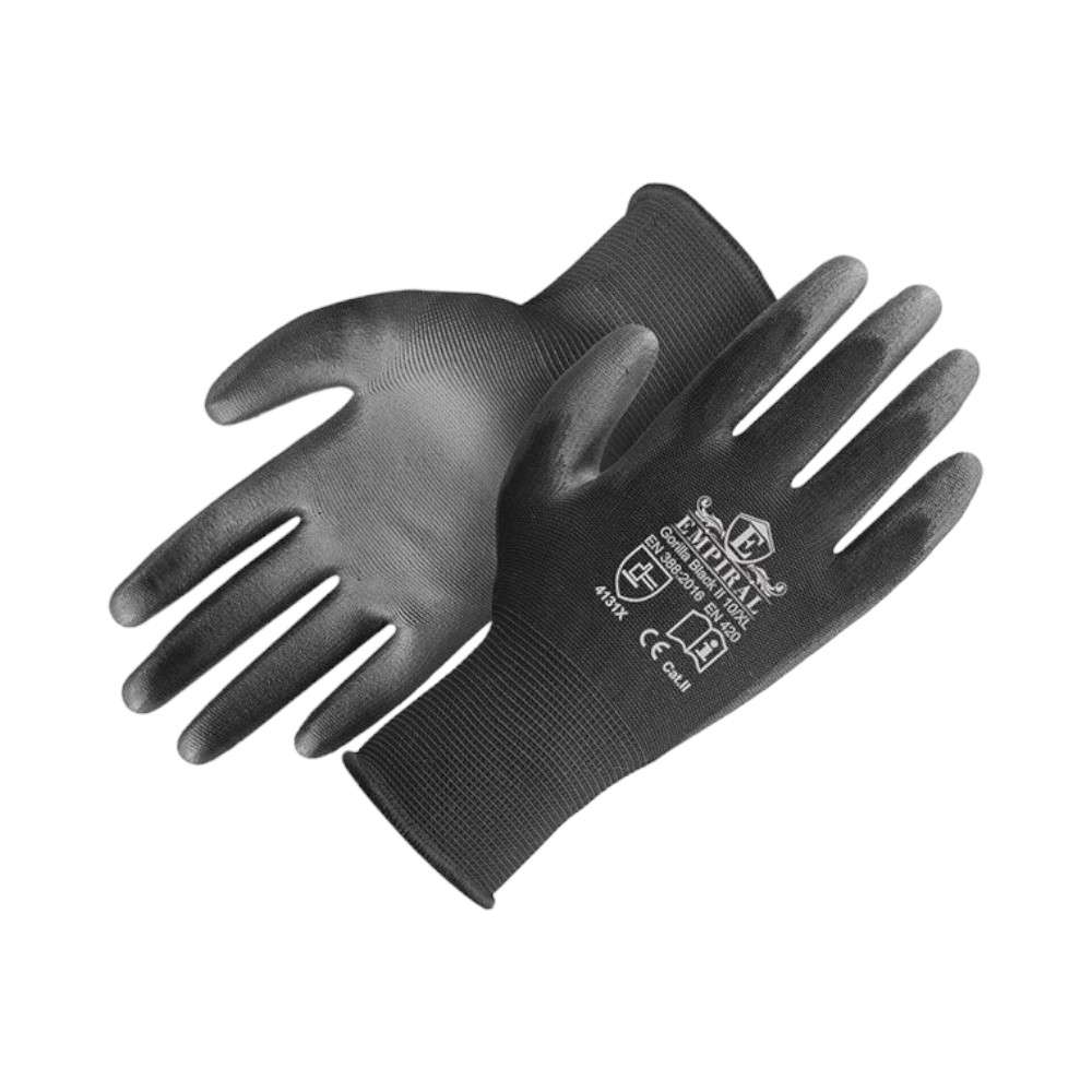 Empiral Gorilla II Polyester Liner PU Palm Coated Glove, Black, XL,1Pair/pack