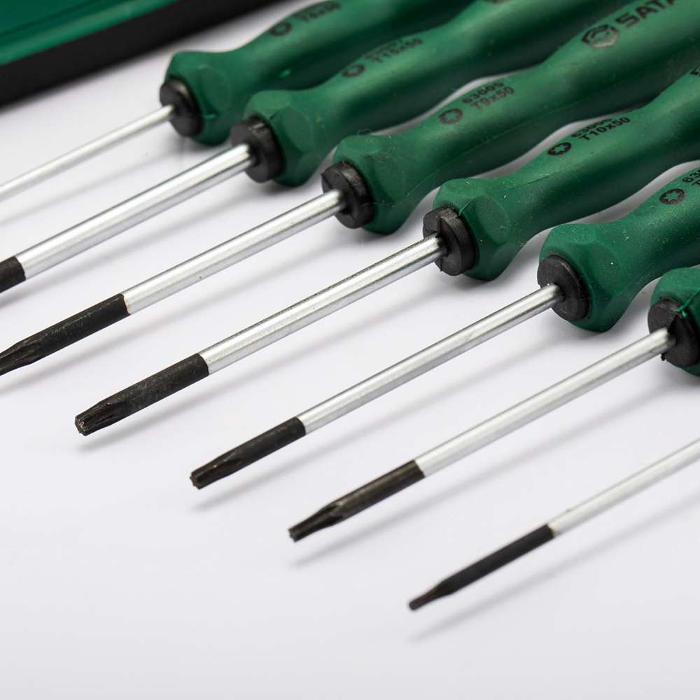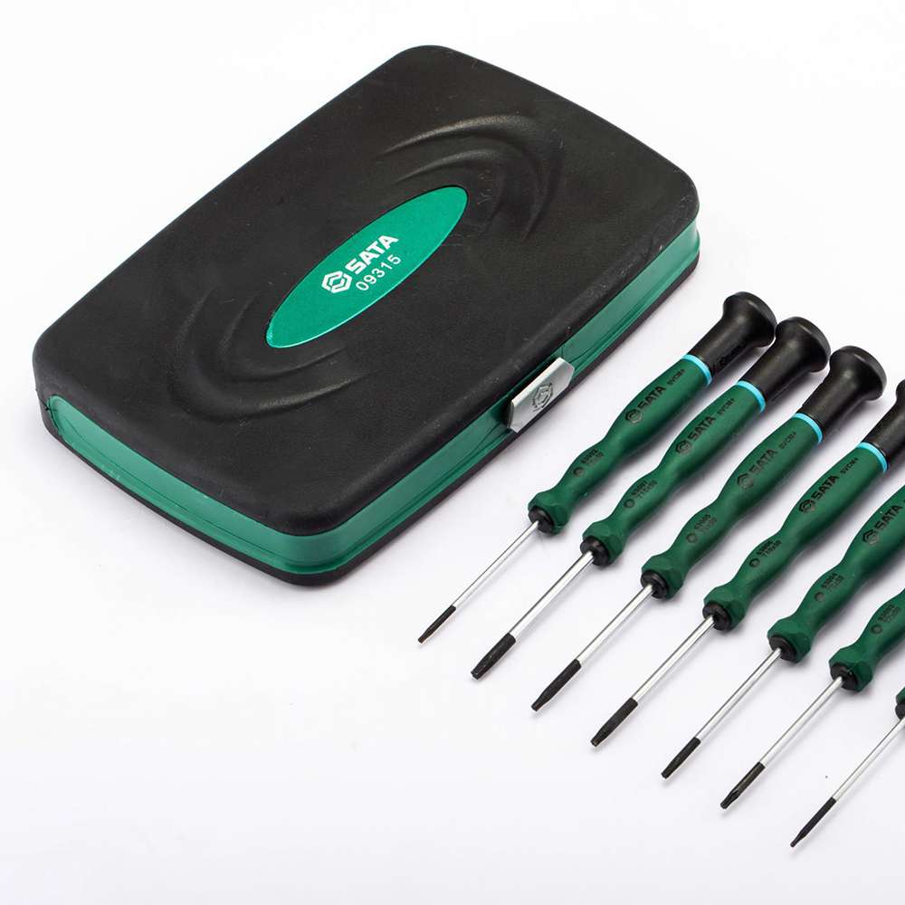 طقم دقيق مكون من 7 قطع: يتضمن مجموعة متنوعة من مفكات براغي توركس الدقيقة بأحجام مختلفة، مما يوفر تغطية شاملة لمهام فك براغي توركس الدقيقة، مثالية للإلكترونيات والأعمال التفصيلية.