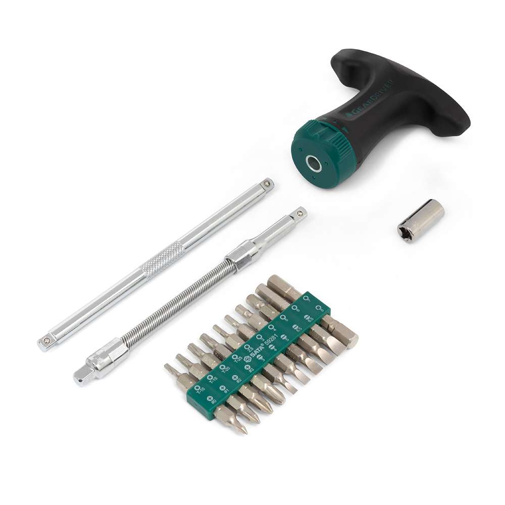 مجموعة مكونة من 24 قطعة: تتضمن مجموعة متنوعة من مفكات البراغي بمقبض على شكل حرف T قابلة للتبديل، مما يوفر تغطية واسعة لمجموعة واسعة من مهام تثبيت البراغي ويقلل من الحاجة إلى أدوات متعددة.