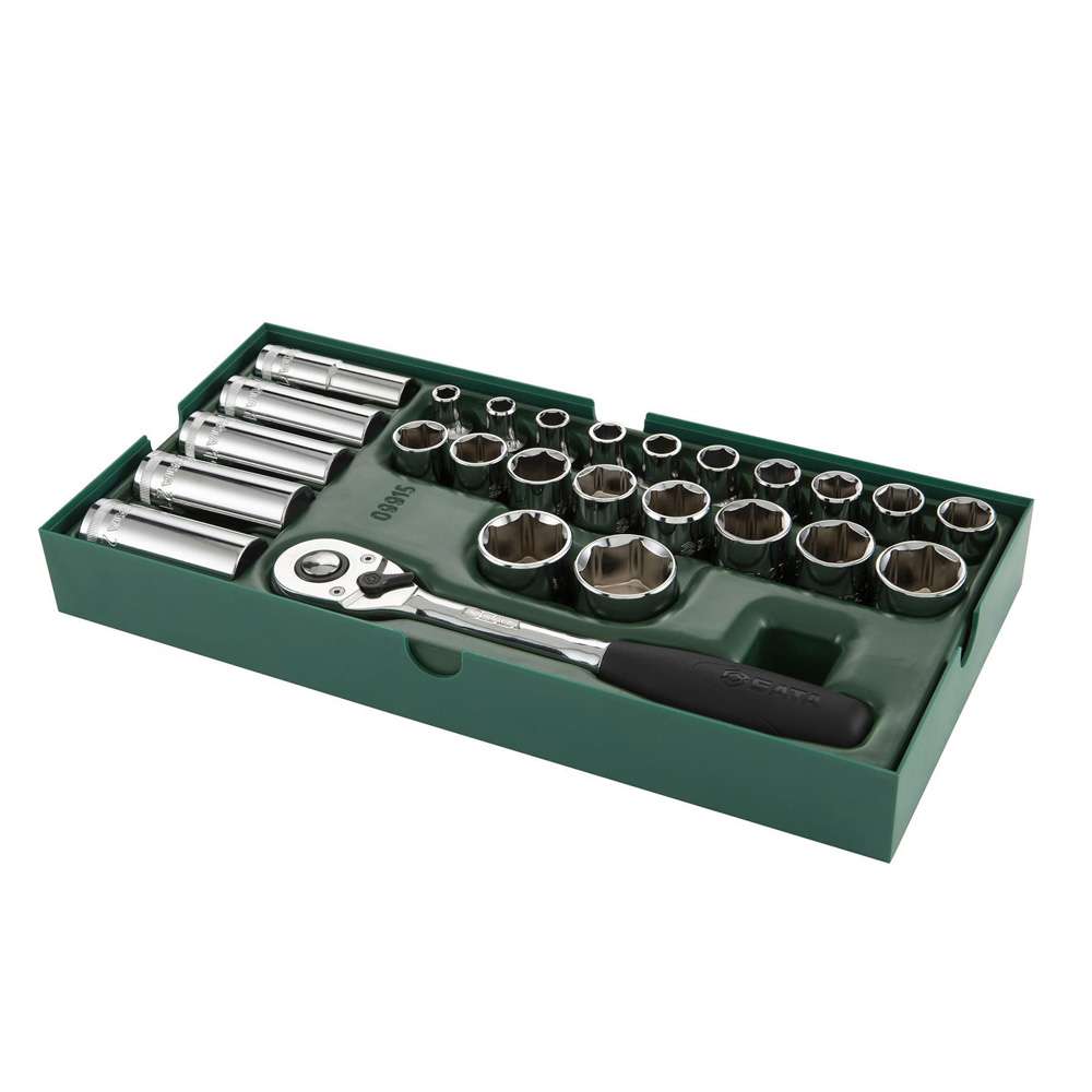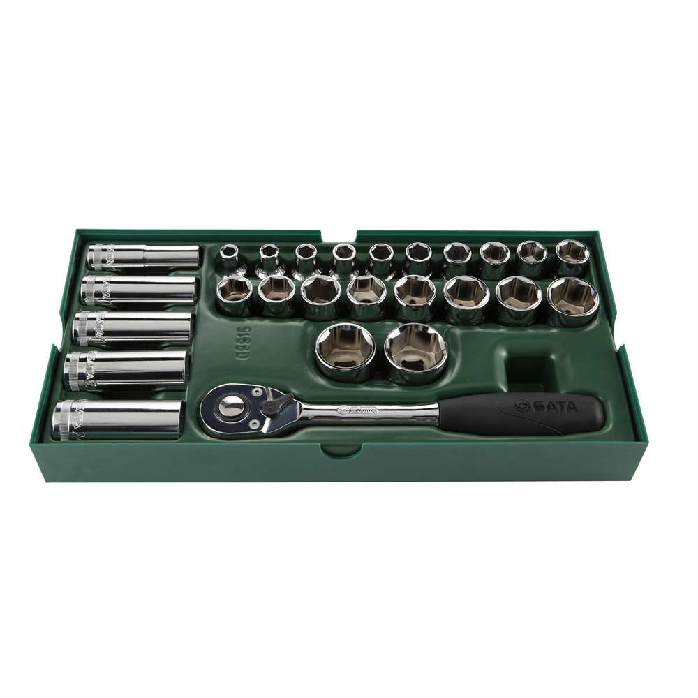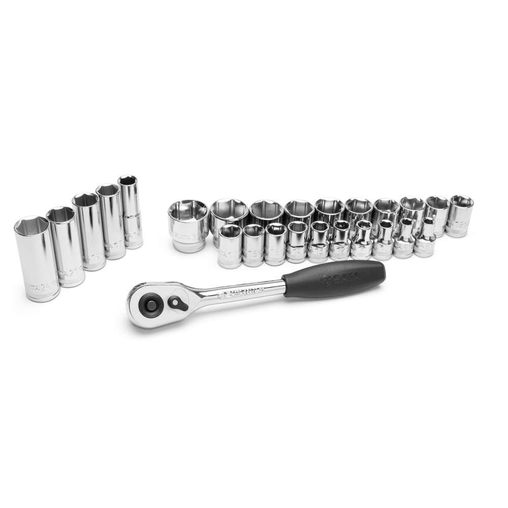 مجموعة مقابس كاملة: تتضمن 26 مقبسًا متريًا تتراوح من 10 مم إلى 32 مم، تلبي مجموعة واسعة من التطبيقات الميكانيكية والسيارات.