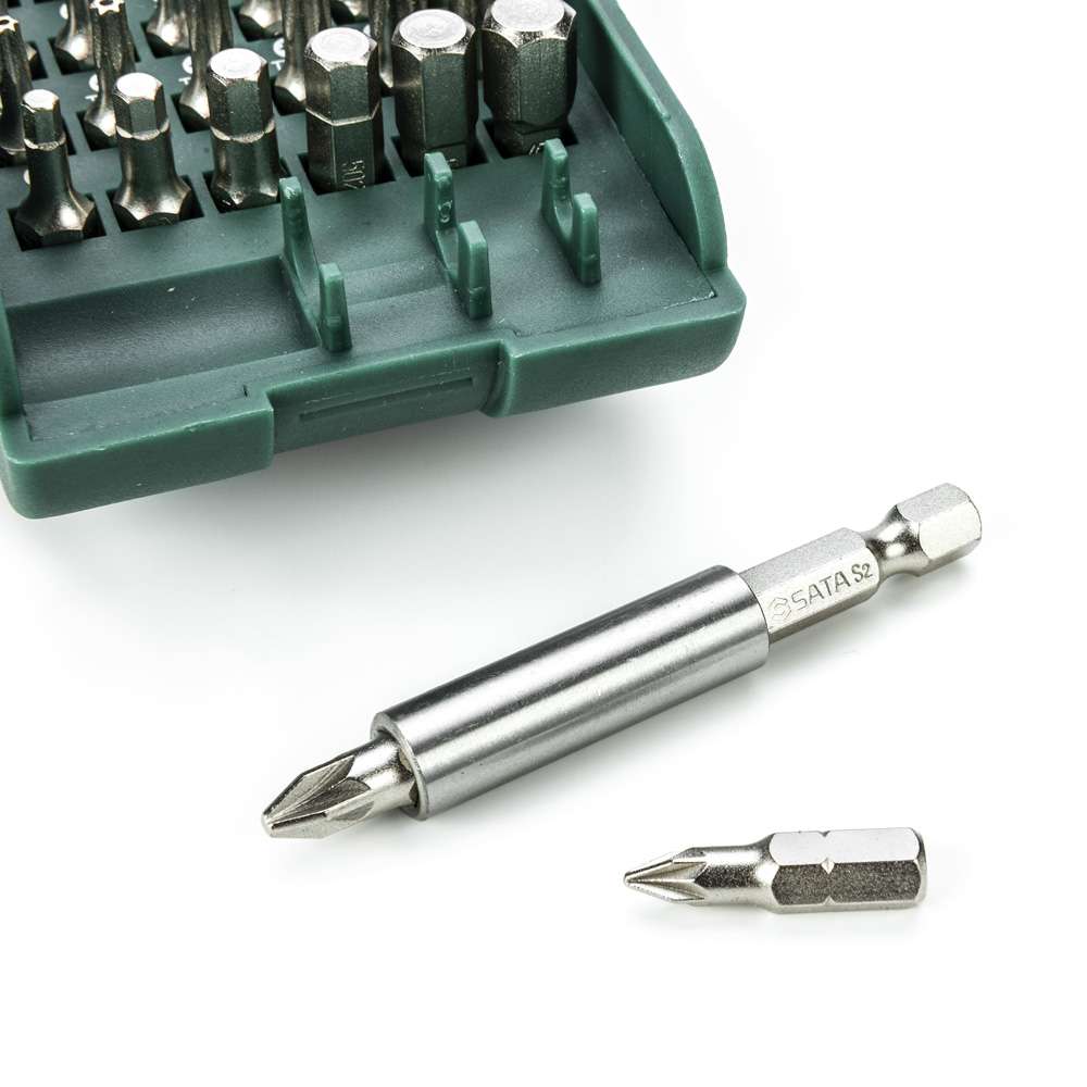مجموعة شاملة من اللقم: تتضمن 31 قطعة من اللقم المختلفة، مما يوفر مجموعة واسعة من الخيارات لمهام التثبيت المختلفة، مما يضمن حصولك على الأداة المناسبة لأي مهمة.