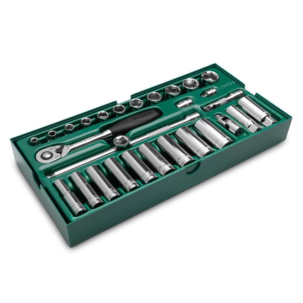 صينية تخزين منظمة: تأتي مع صينية مخصصة لسهولة التنظيم والتخزين، مما يساعد في الحفاظ على مساحة عملك مرتبة ويسمح بالتعرف السريع على حجم المقبس المطلوب.