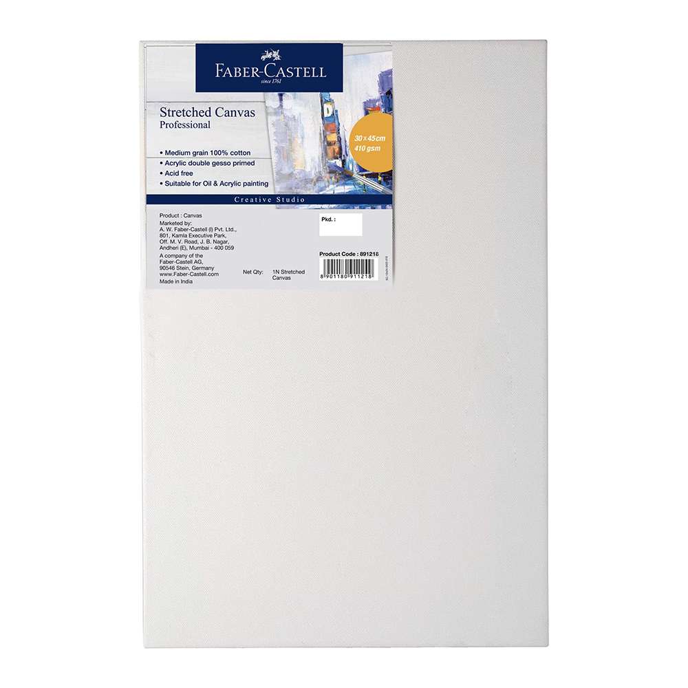 Faber-Castell Stretched Canvas Board, 410 gsm, 30 × 45 cm, Medium Grain, 100% Cotton, Double-Primed, Acid-Free, Great Texture, Suitable for Oil & Arcylic Painting, Ideal for Professional – Single Board