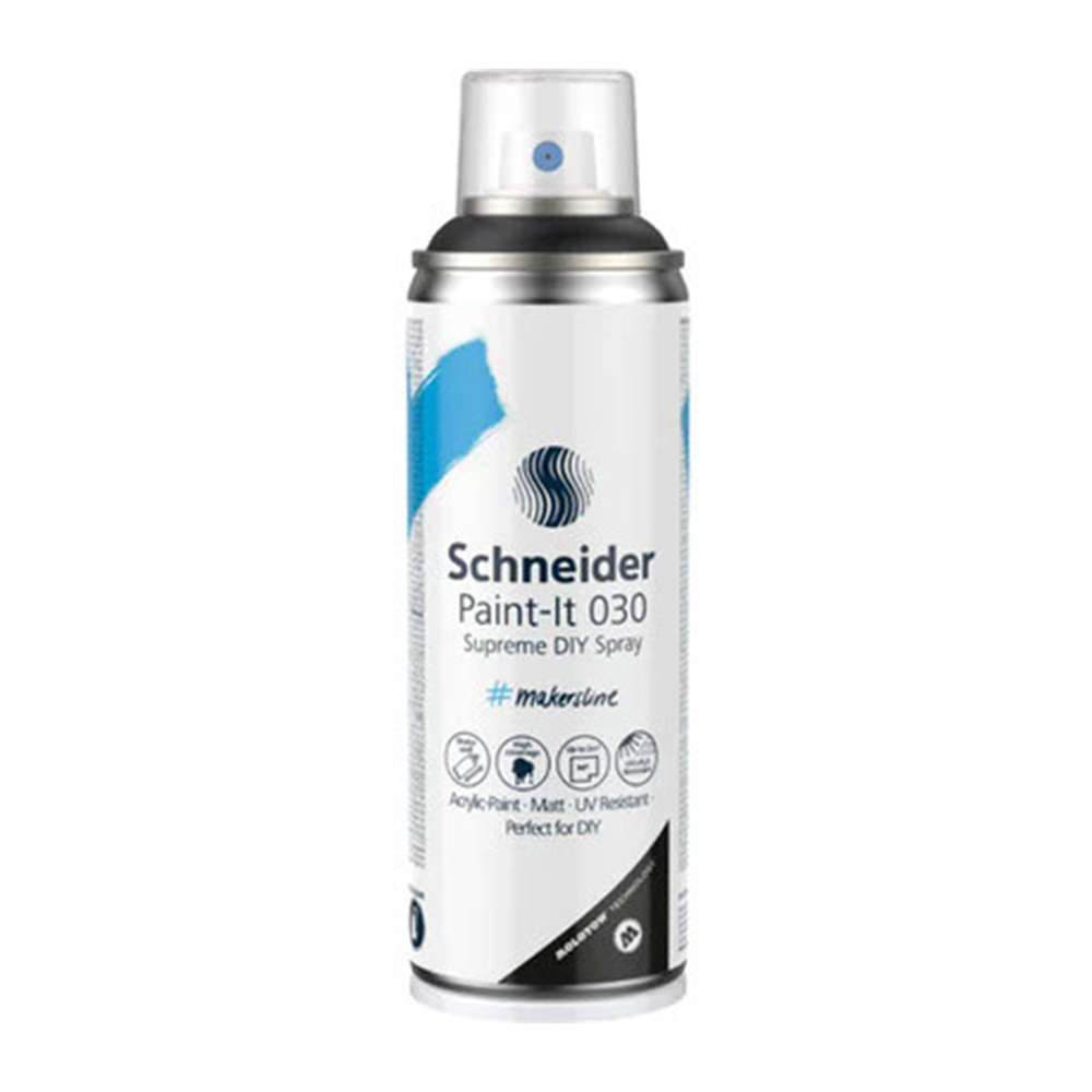 بخاخ طلاء أكريليك شنايدر (Paint-It-030) تغطية عالية (200ml) مقاوم للأشعة فوق البنفسجية، غطاء ضغط منخفض، ألوان رائعة، مثالي لطلاء الجدران وغيرها الكثير طبقة طلاء بلون أسود