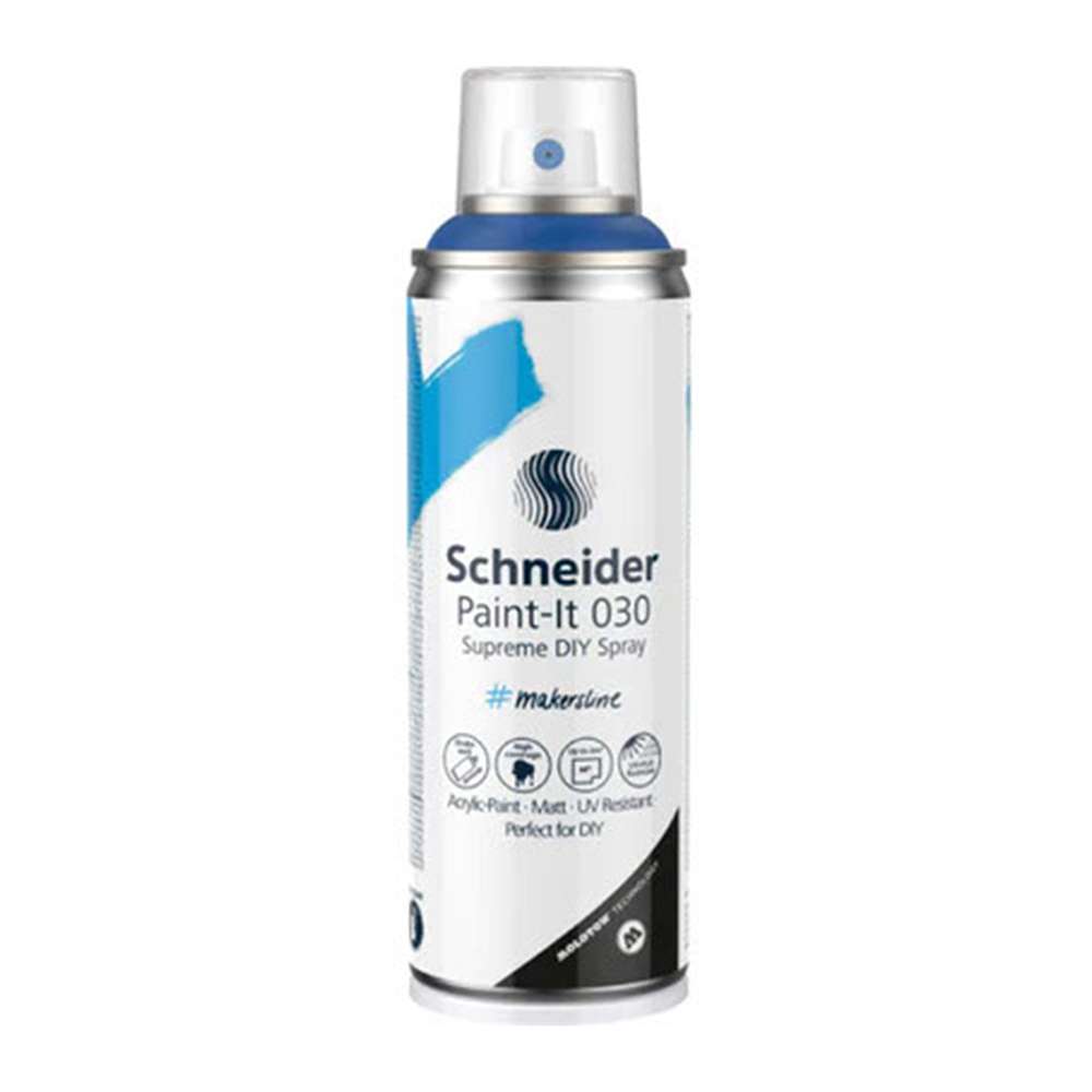 بخاخ طلاء أكريليك شنايدر (Paint-It-030) تغطية عالية (200ml) مقاوم للأشعة فوق البنفسجية، غطاء ضغط منخفض، ألوان رائعة، مثالي لطلاء الجدران وغيرها الكثير طبقة طلاء بلون أزرق