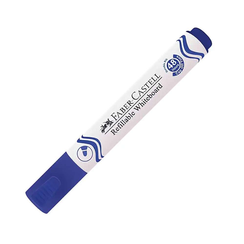 Faber-Castell Whiteboard Marker W20, Refillable & Dry Wipe, Bullet Tip, 2.2–2.8 mm, Low-Odour, Smooth Flow, Ideal for School & Office Use - Blue