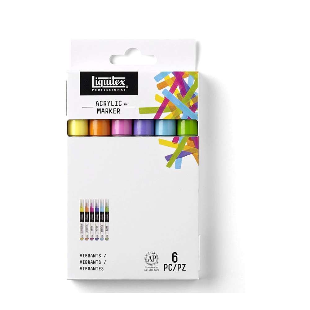 قلم تحديد احترافي من ليكويتكس، سن رفيع، أكريليك مائي، مقاوم للضوء، ألوان زاهية، مناسب للفنانين المحترفين ضمن عبوة من (6) ألوان