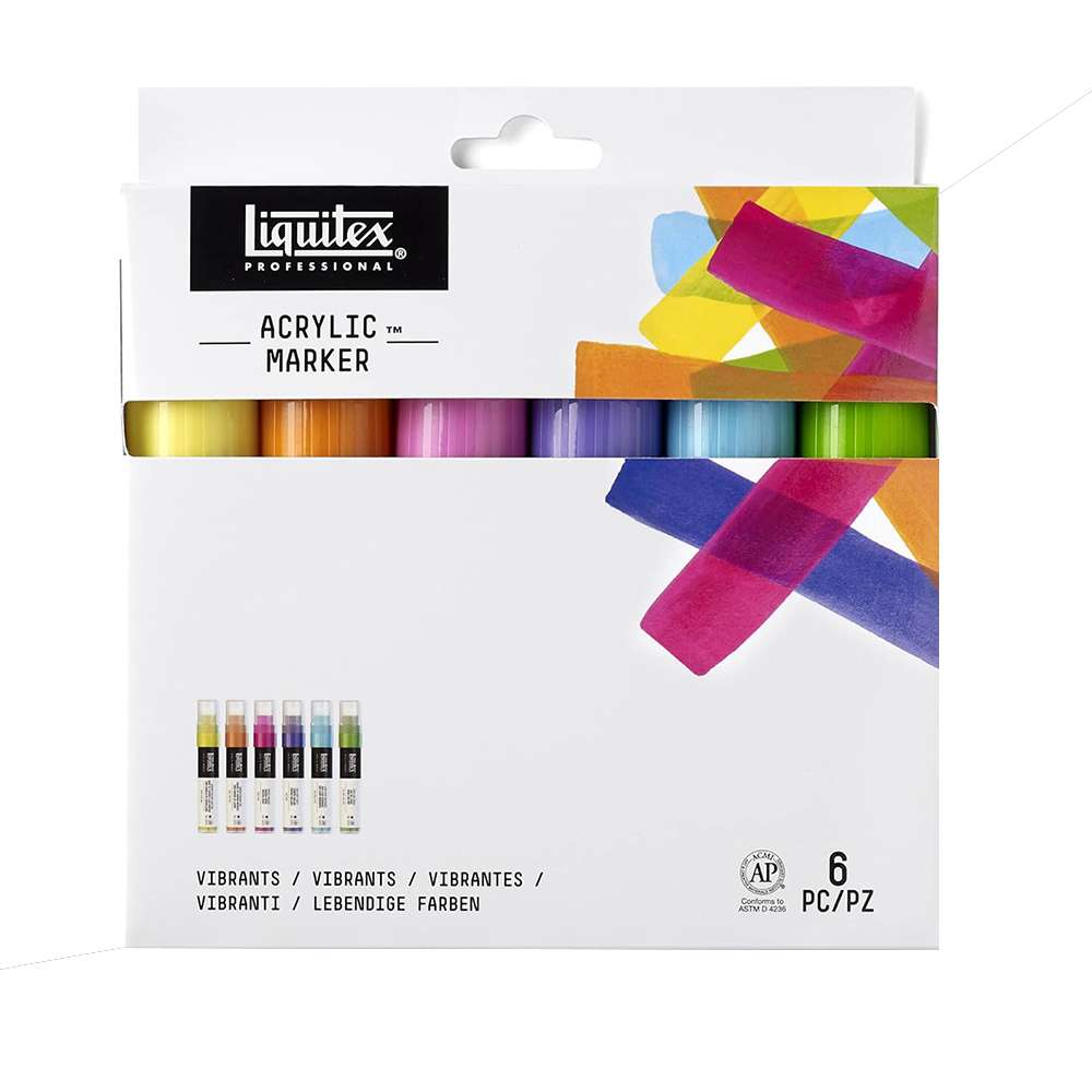قلم ليكويتكس الاحترافي للرسم، بسن عريض، أكريليك مائي، مقاوم للضوء، ألوان زاهية، مناسب للفنانين المحترفين ضمن عبوة من (6) ألوان