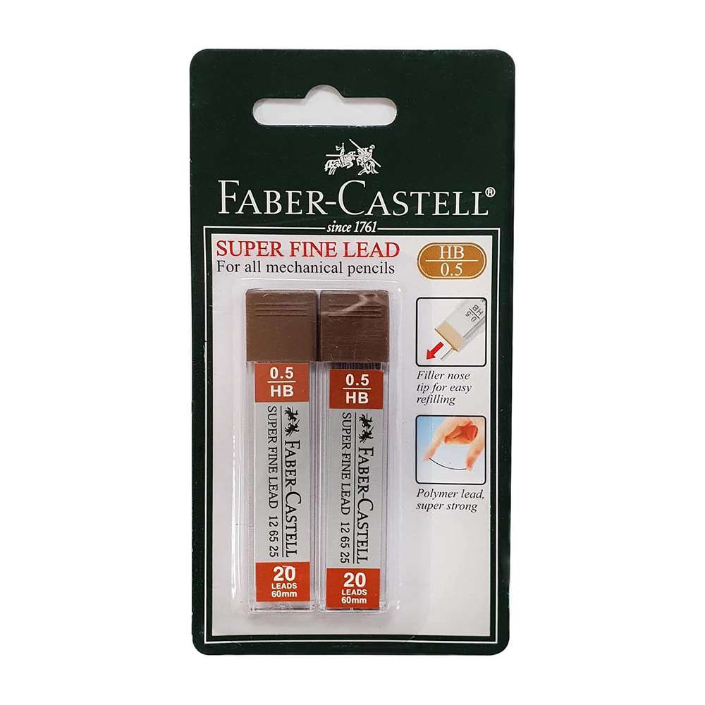 Faber-Castell Superfine Polymer Lead 0.5 mm, HB, Easy to Refill, Fine & Clear Stroke, Ideal for Technical Task - Blister Card of 2 Tubes