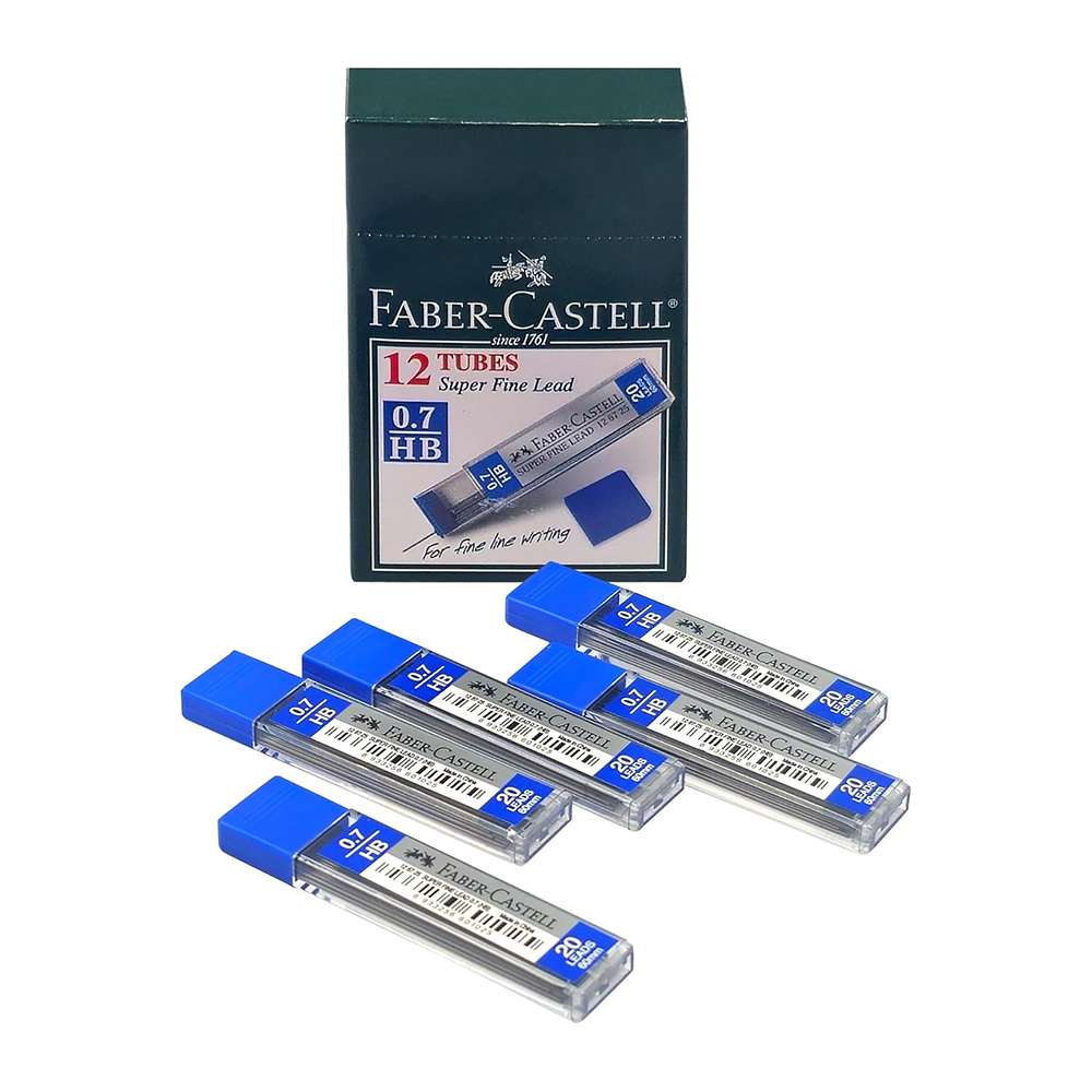 Faber-Castell Superfine Lead 0.7 mm, HB, Easy to Refill, Fine & Clear Lines, Ideal for Technical Task, Tube of 20 Leads - Pack of 12 Tube