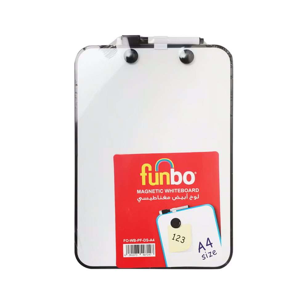 Funbo Double-Sided Magnetic Whiteboard with Marker, Plastic Frame, A4, Lightweight Message Board, Smooth Surface, Ideal for School & Office – Pack of 1 + 1