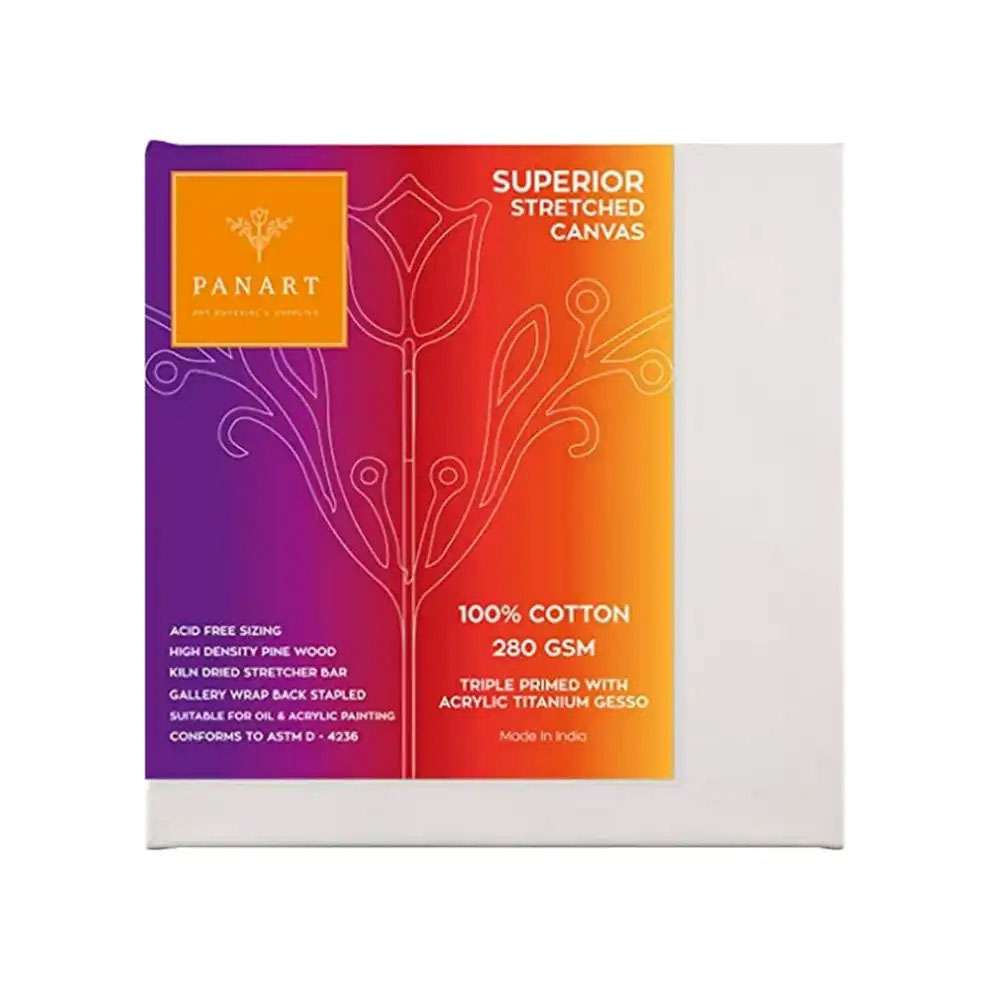 Panart Stretched Cotton Canvas, 50x50 cm, 1.5” Depth, 350 GSM, Square Format