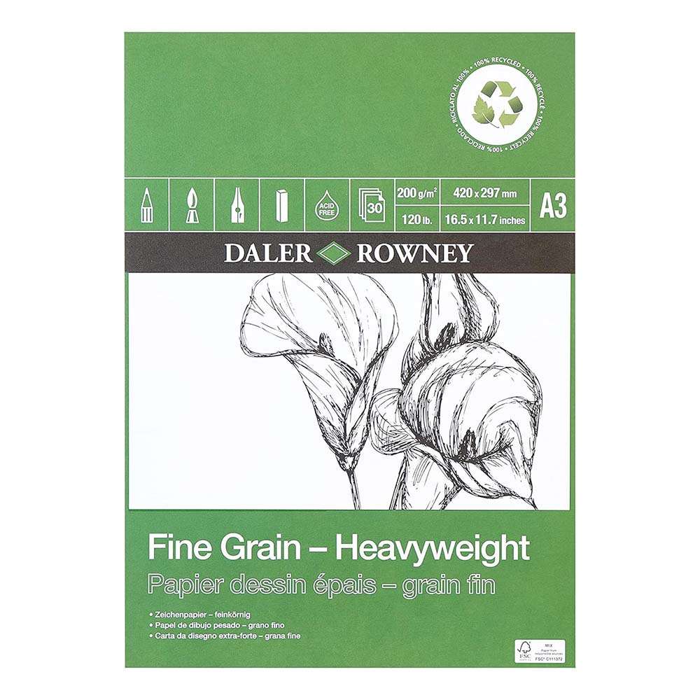 Daler Rowney Fine Grain Eco Heavyweight Pad, A3, 200gsm, Recycled Artist Sketch & Drawing Paper – 25 Sheets