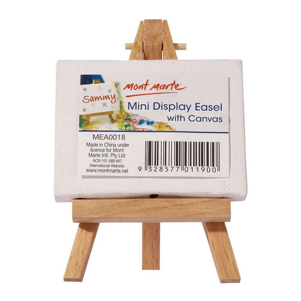Mont Marte Easel with Canvas, Mini 6x8cm, Wooden Display Easel with Pre-Stretched Canvas for Craft & Painting