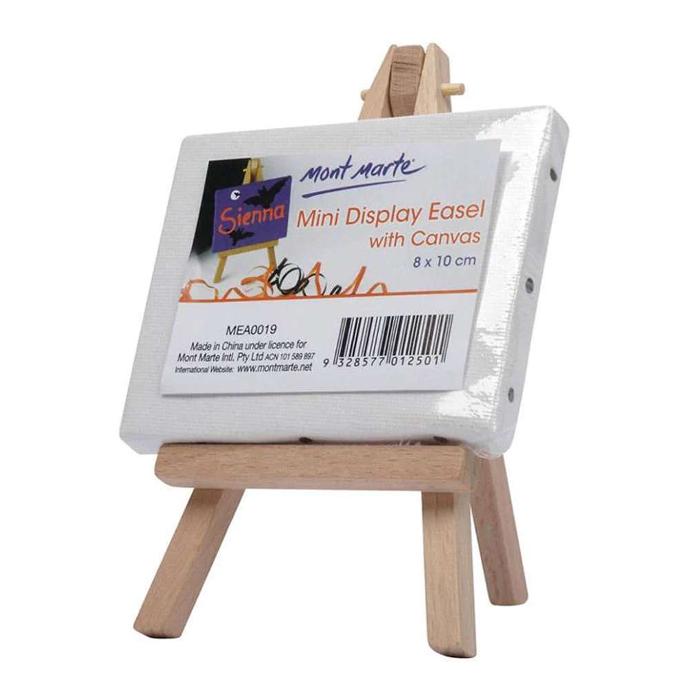 Mont Marte Easel with Canvas, Mini 8x10cm, Wooden Easel & Pre-Stretched Canvas for Creative Art & Display
