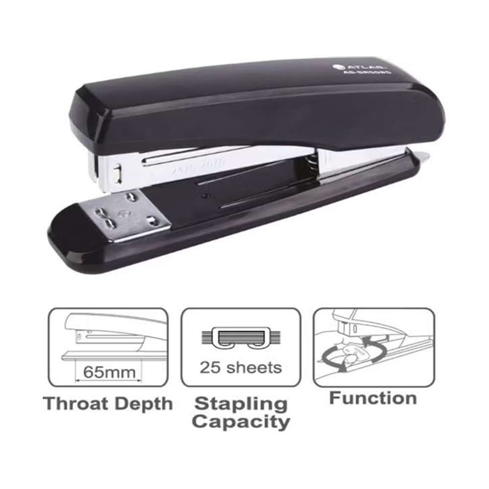 Atlas presents the Half Strip Metal Stapler with Staple Remover, model AS-SR5085-BK, in black. Perfect for everyday stapling, it also features a built-in staple remover for easy staple extraction.