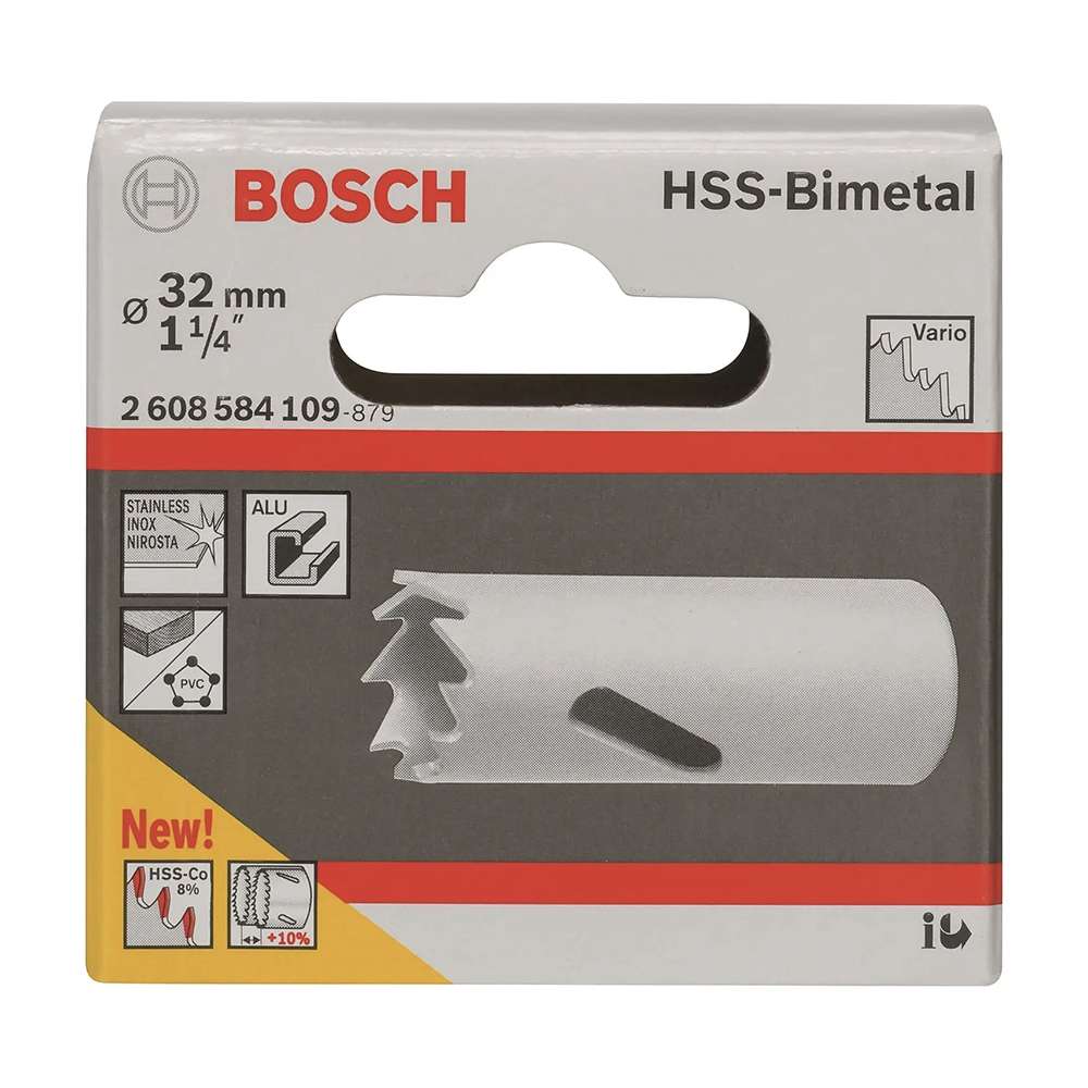 Designed for precision cutting through metal, wood, plastic, and other materials. Featuring high-speed steel (HSS) teeth and a bi-metal construction, it offers superior durability and long-lasting performance. This 32mm hole saw ensures clean, smooth cuts for various applications, from plumbing to electrical work. Its multi-material compatibility and easy installation make it a versatile tool for both professionals and DIY enthusiasts. Achieve quick, accurate holes every time with the Bosch bi-metal hole saw, a reliable and cost-effective solution for all your cutting needs.