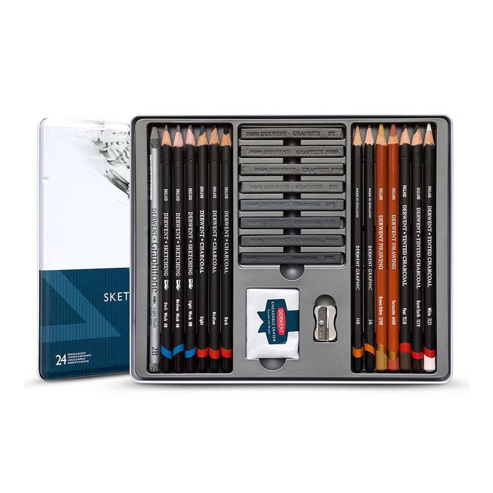 Derwent Studio Pencil Set, Tin of 24, Fine Core, Precision Artist Drawing Pencils