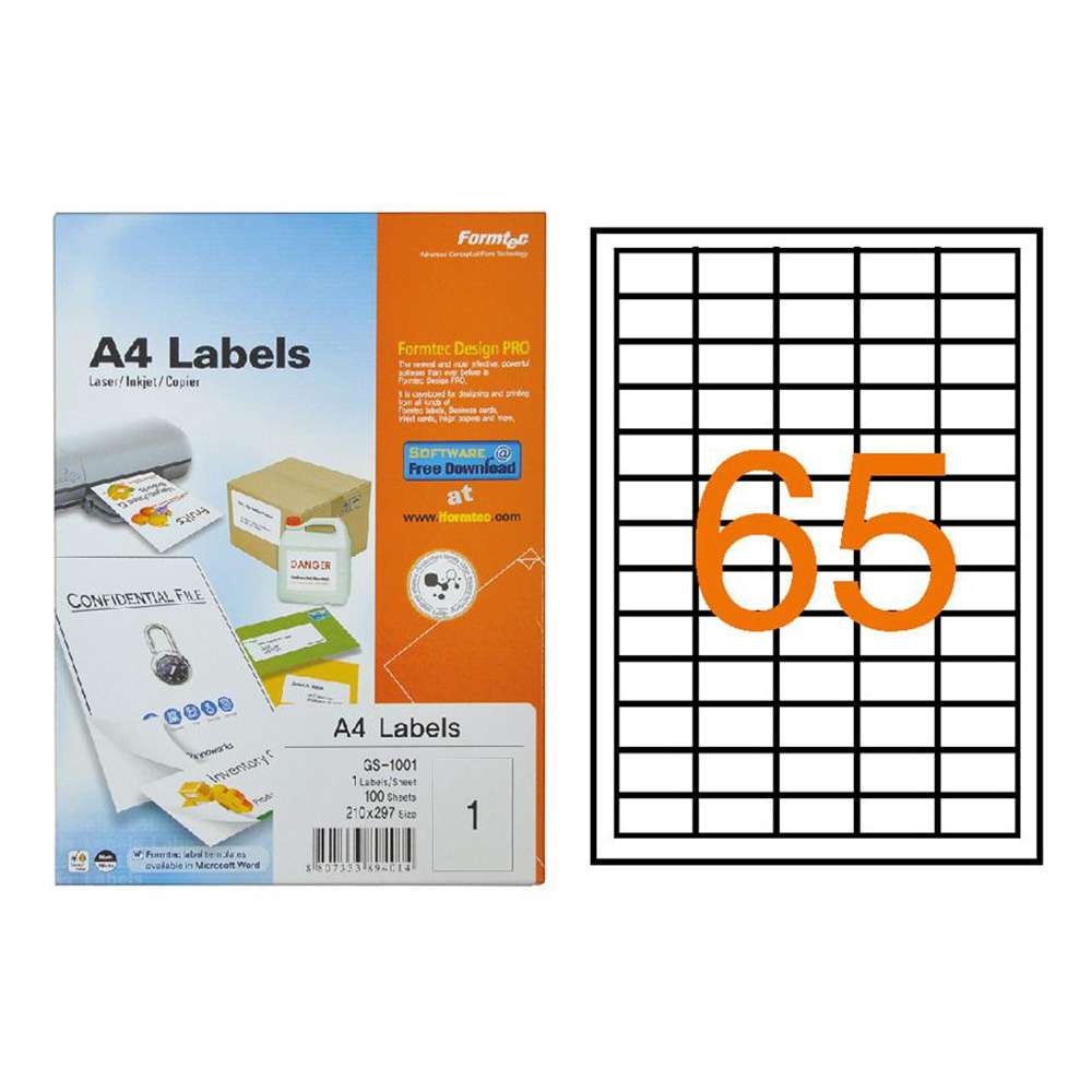 Formtec Label 100 Labels, A4 Size - Pack of 100 Sheets