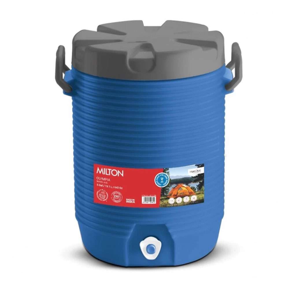 Milton Kool Olympia Water Jug, 19 Litres, Insulated Body for Long-Lasting Coolness, Easy-Pour Tap - Blue & Grey