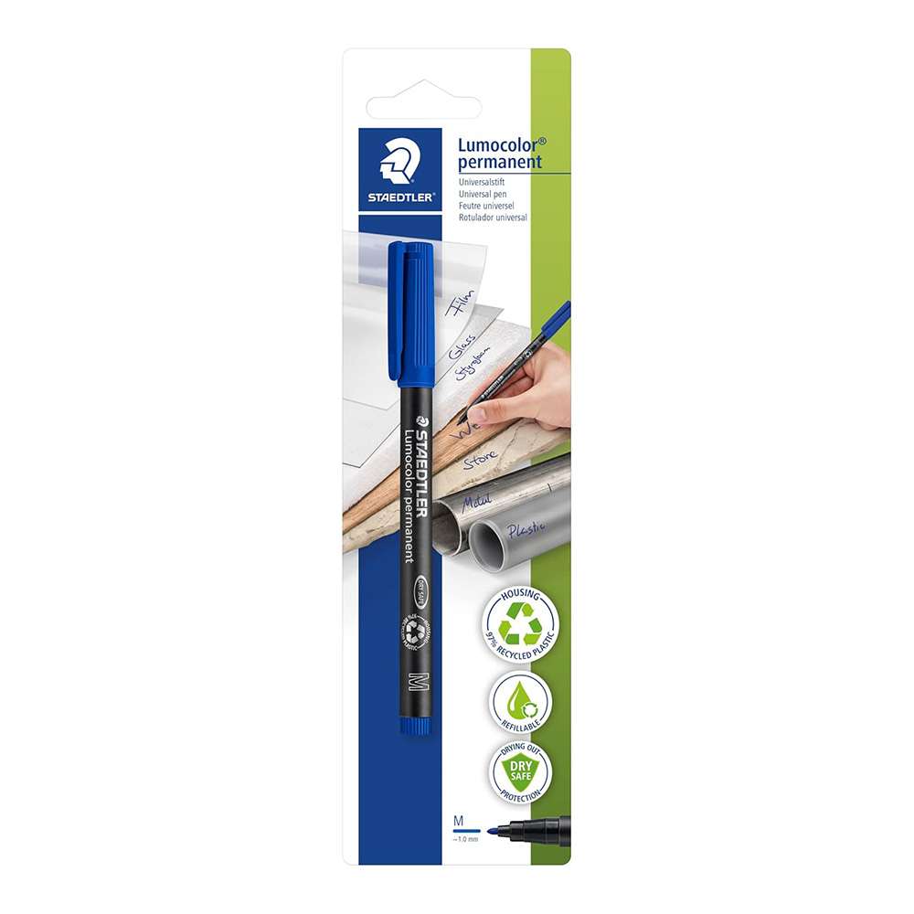 Staedtler Lumocolor Permanent Marker Pens, Medium 1.0 mm, Smooth Flow, Dry Safe, Easy Grip, Ideal for Marking & Writing - Blue