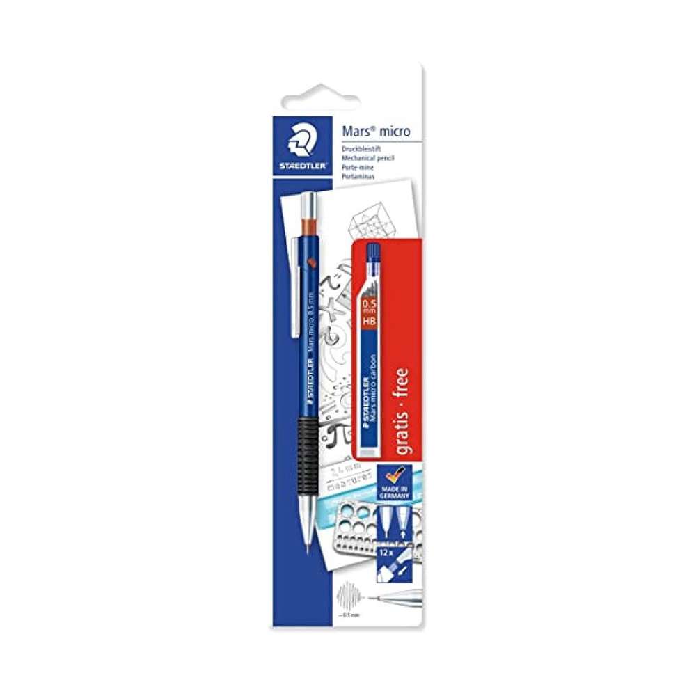Staedtler Mars micro Mechanical Pencil Set with Lead Tube, 0.5 mm, Rubber Grip, Metal Tip, Smooth Flow, Easy to Refill, Ideal for Technical Writing - Pack of 1 + 1