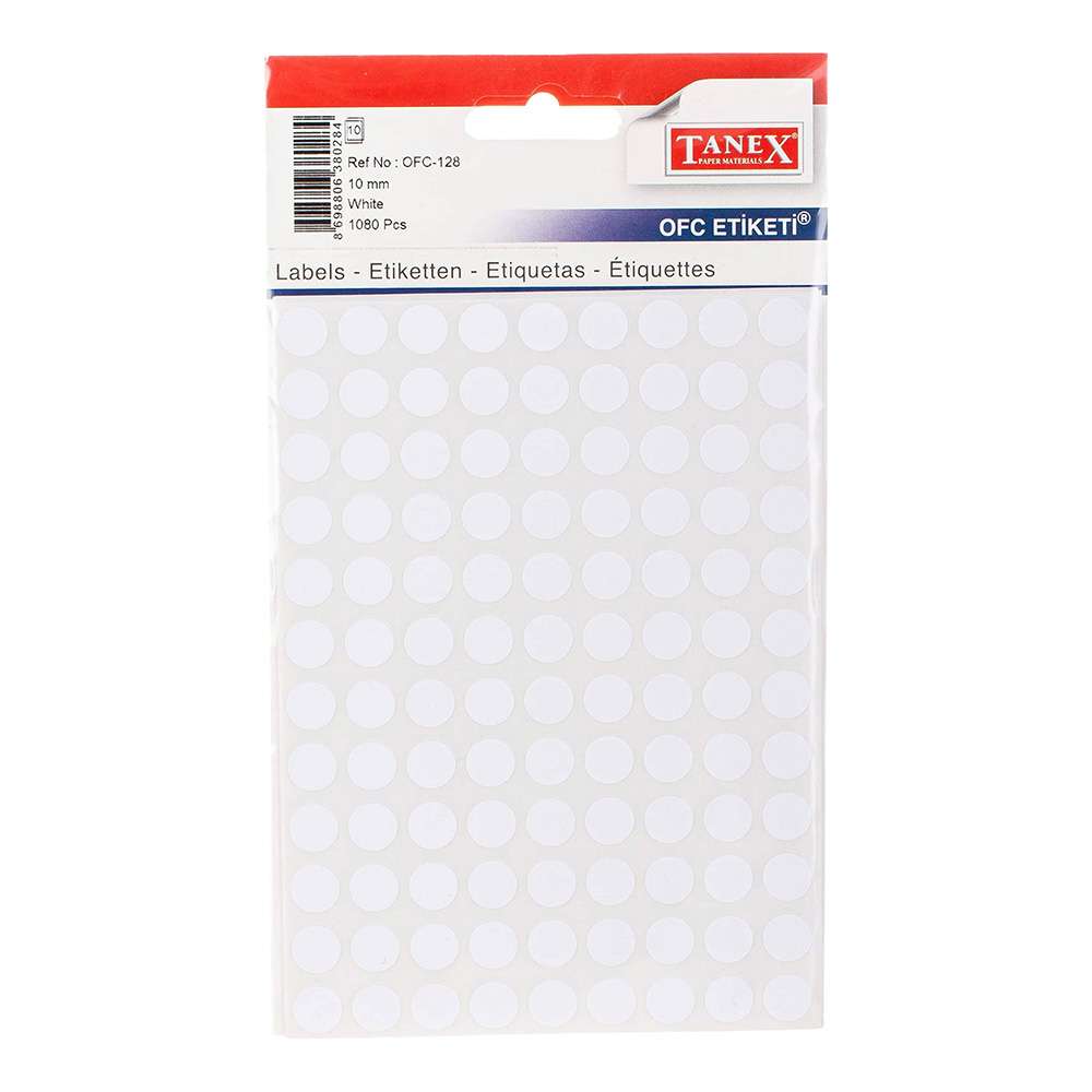 Tanex Round Adhesive Labels, 10 Mm, Easy To Sort, Perfect For Office Use, White – Pack Of 108