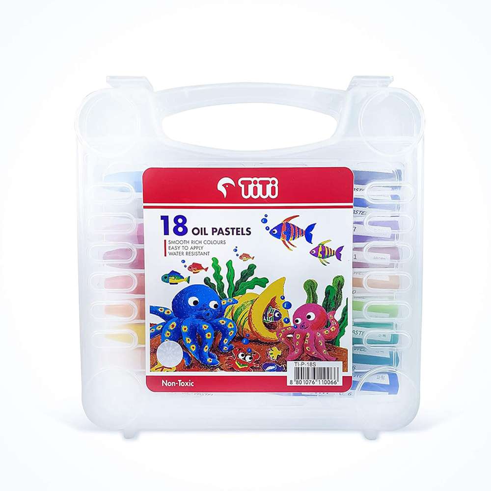 Titi Smooth & Rich Oil Pastels, PP Carry Case, Soft Laydown & Easy Blending, Smooth Texture, Safe for Kids, Ideal for School & Craft Use – Set of 18 Colors