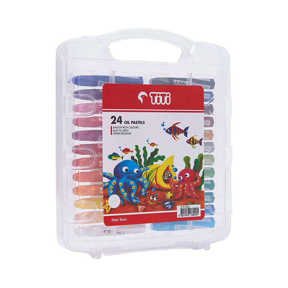 Titi Smooth & Rich Oil Pastels, PP Carry Case, Soft Laydown & Easy Blending, Smooth Texture, Versatile Studio Starter, Safe for Kids, Ideal for School & Craft Use – Set of 24 Colors