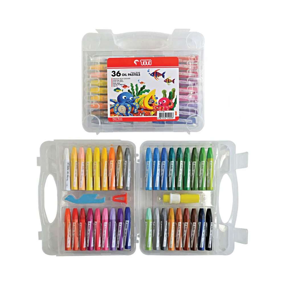 Titi Smooth & Rich Oil Pastels, PP Carry Case, Soft Laydown & Easy Blending, Smooth Texture, Expanded Palette, Safe for Kids, Ideal for School & Craft Use – Set of 36 Colors