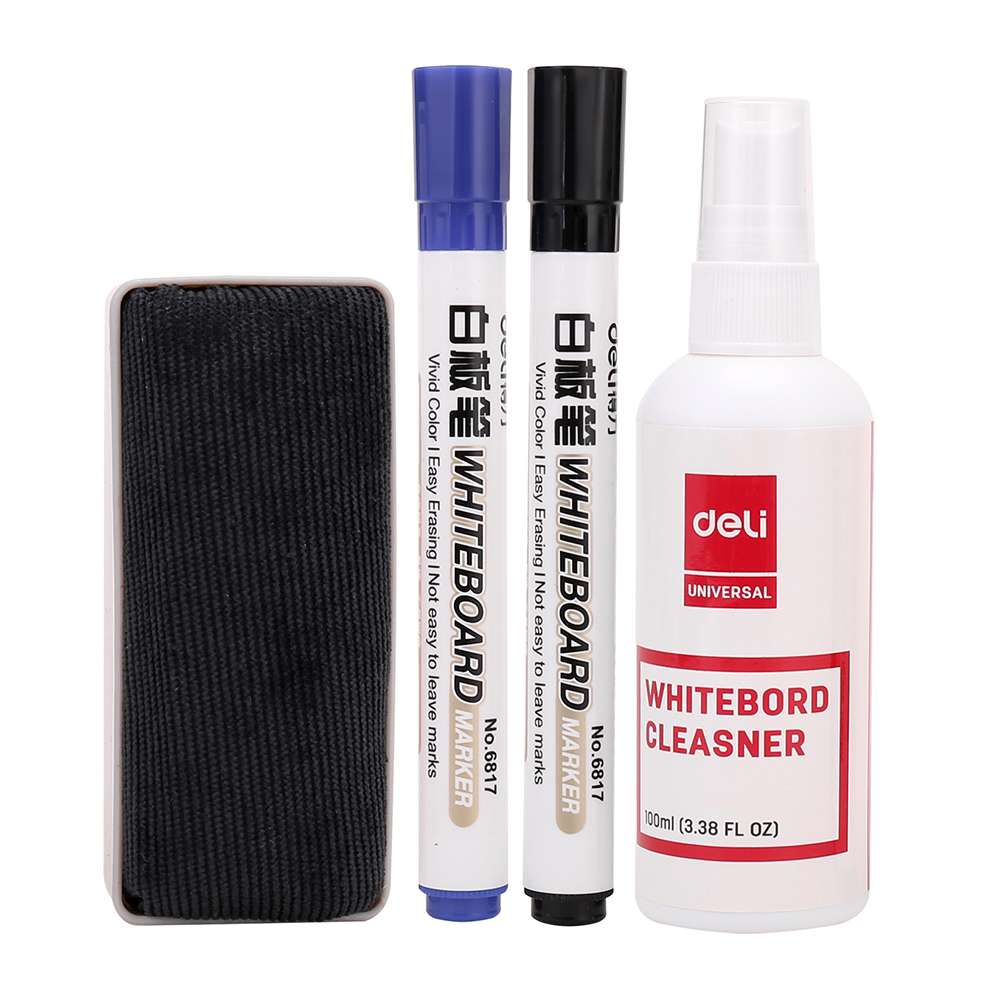 Deli Whiteboard Cleaning Set, Marker, Eraser & Cleaner, Low-Odor, Perfect For School Use - Set Of 1 + 1 + 1